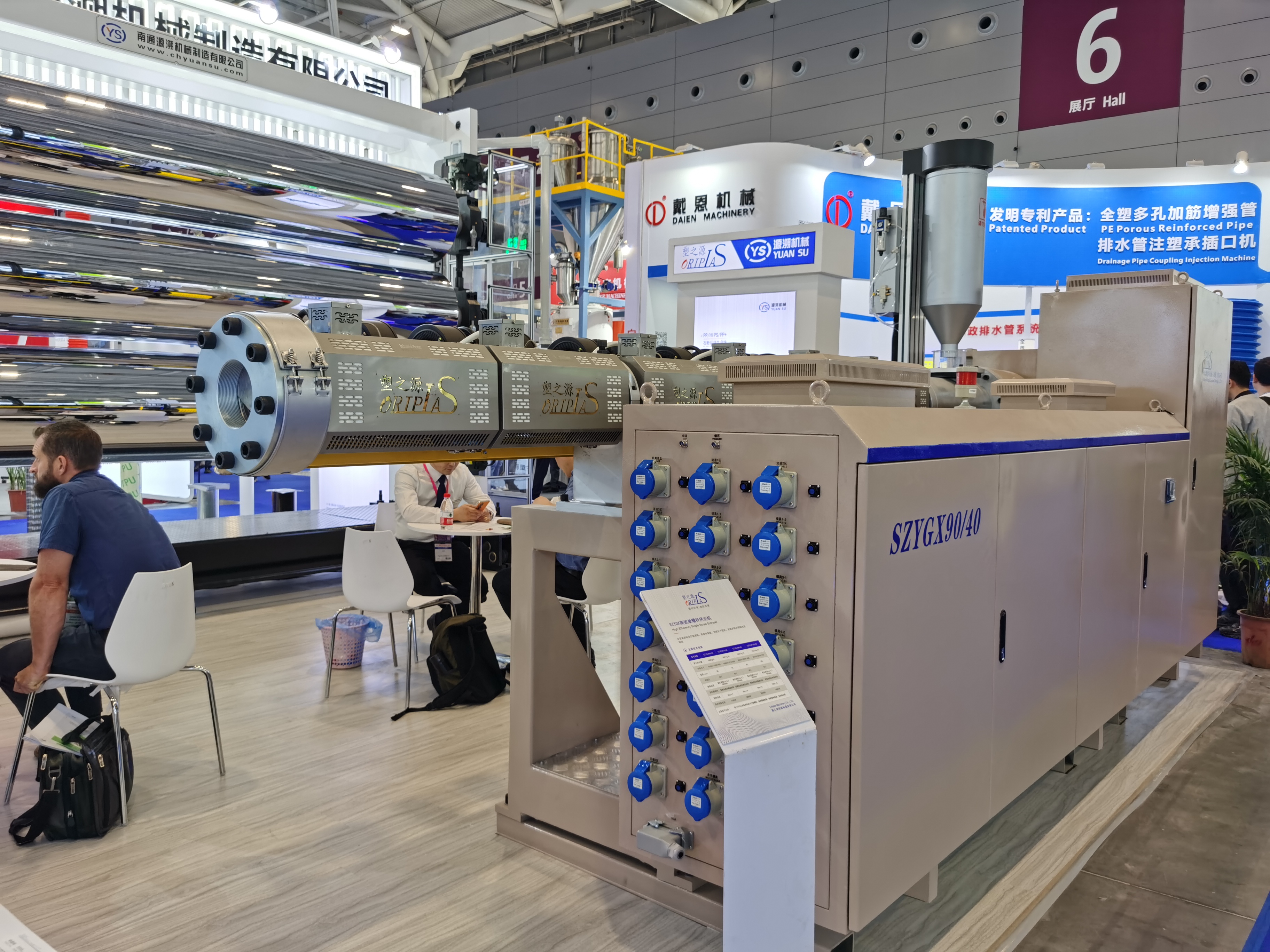 SZYHBW600波纹管卧式成型机,该设备的特点是卧式结构、水平分模,方便操作、模块直接水冷,速度高,生产能力大大提升。